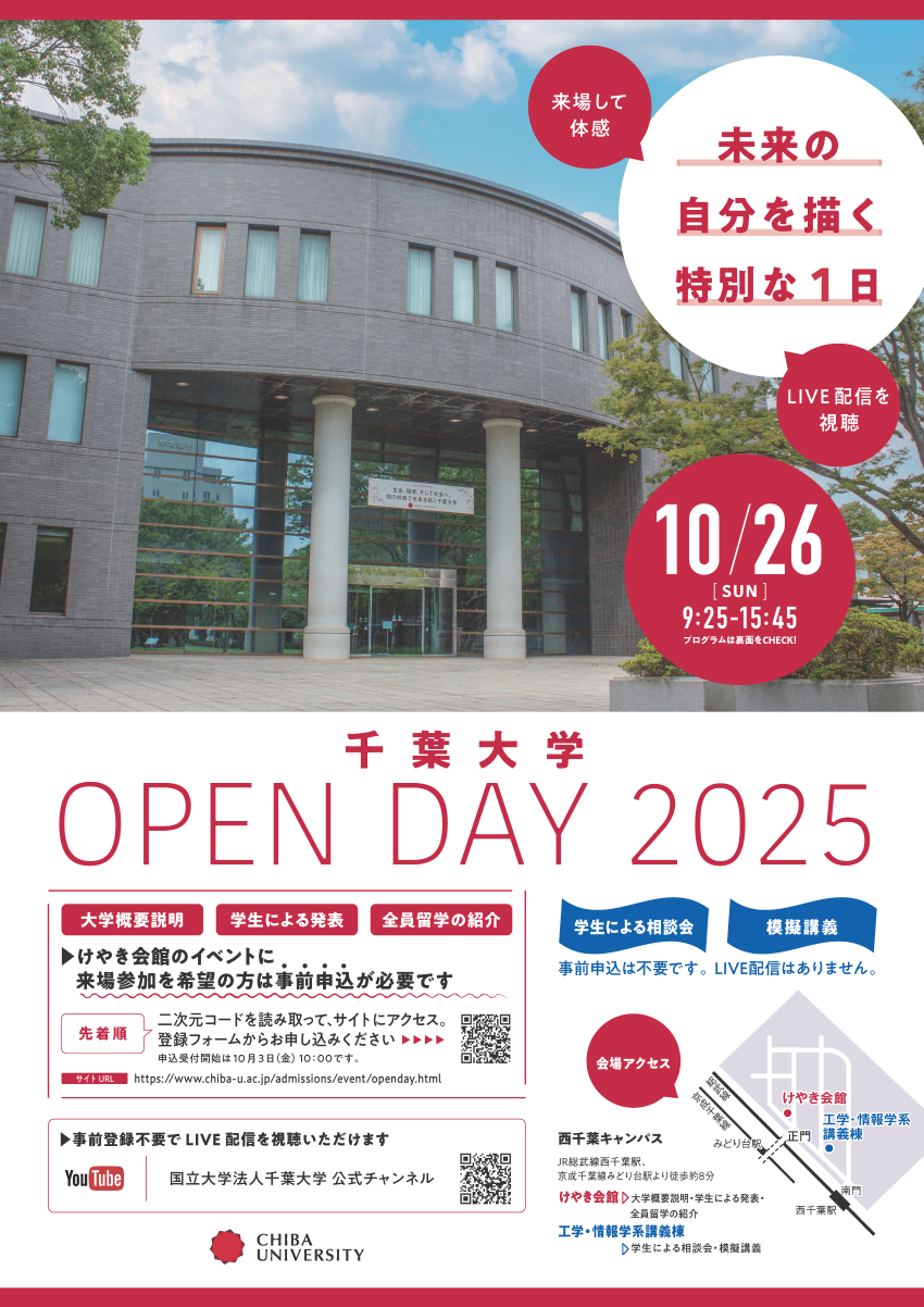 10/26(日)「千葉大学オープンデイ2025」を開催します