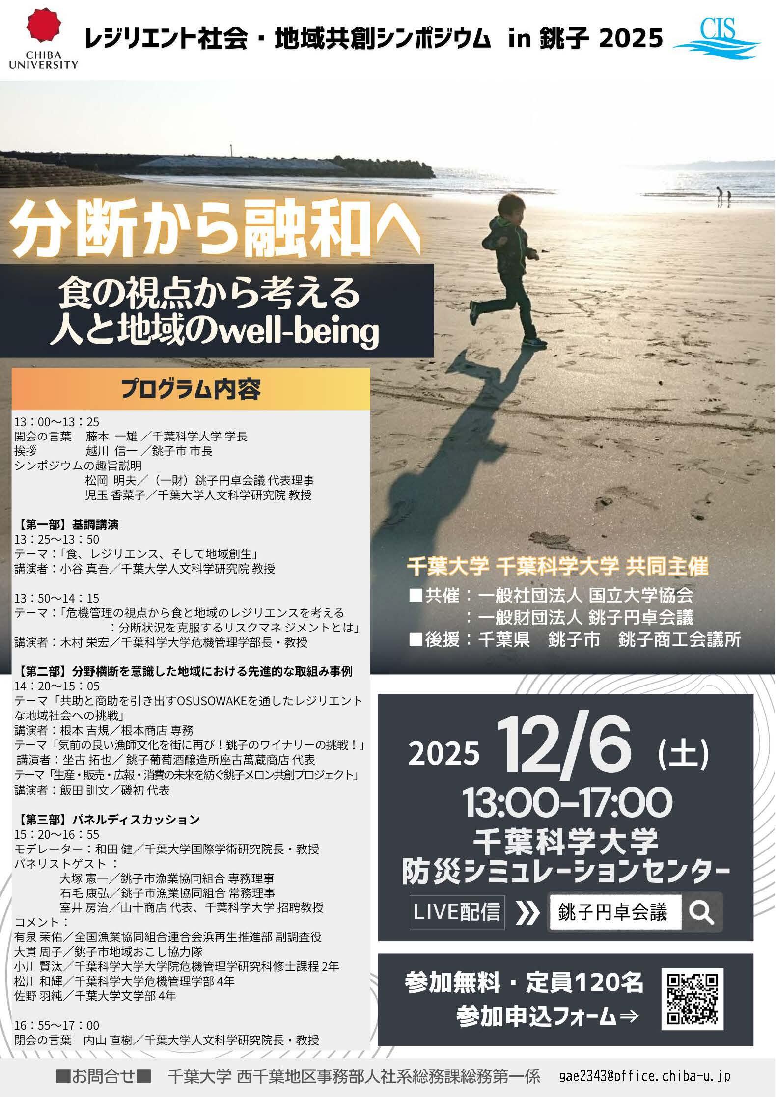 レジリエント社会・地域共創シンポジウムin 銚子 2025 分断から融和へ:食の視点から考える人と地域のwell-being