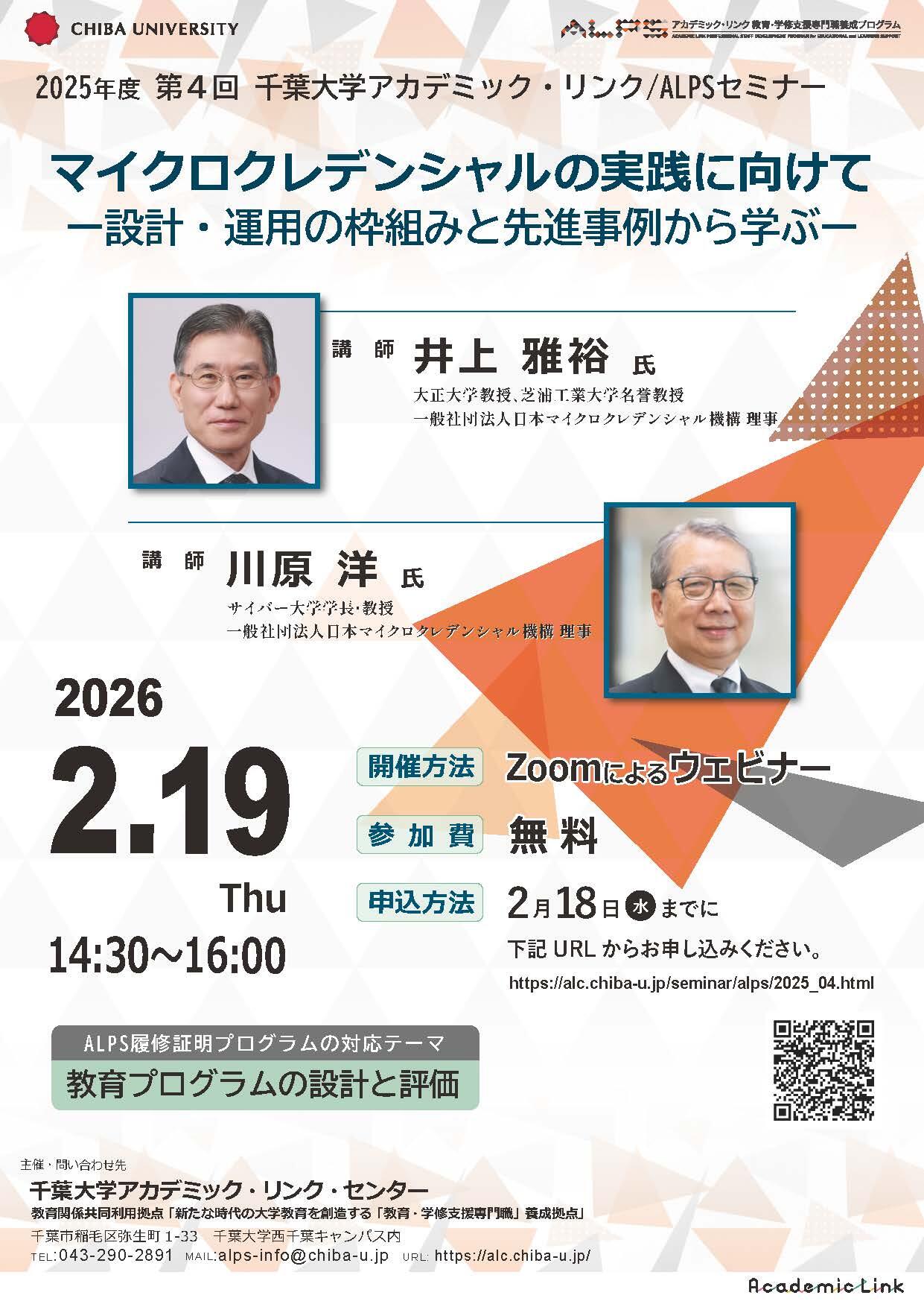 2025年度第4回アカデミック・リンク/ALPSセミナー 「マイクロクレデンシャルの実践に向けて―設計・運用の枠組みと先進事例から学ぶ―」