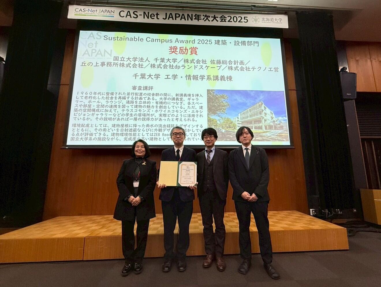 国立大学法人千葉大学は11月8日に開催されたサステイナブルキャンパス推進協議会(CAS-Net JAPAN)2025年次大会において、「第11回サステイナブルキャンパス賞」の学生活動部門の大賞と、建築・設備部門の奨励賞を受賞しました。