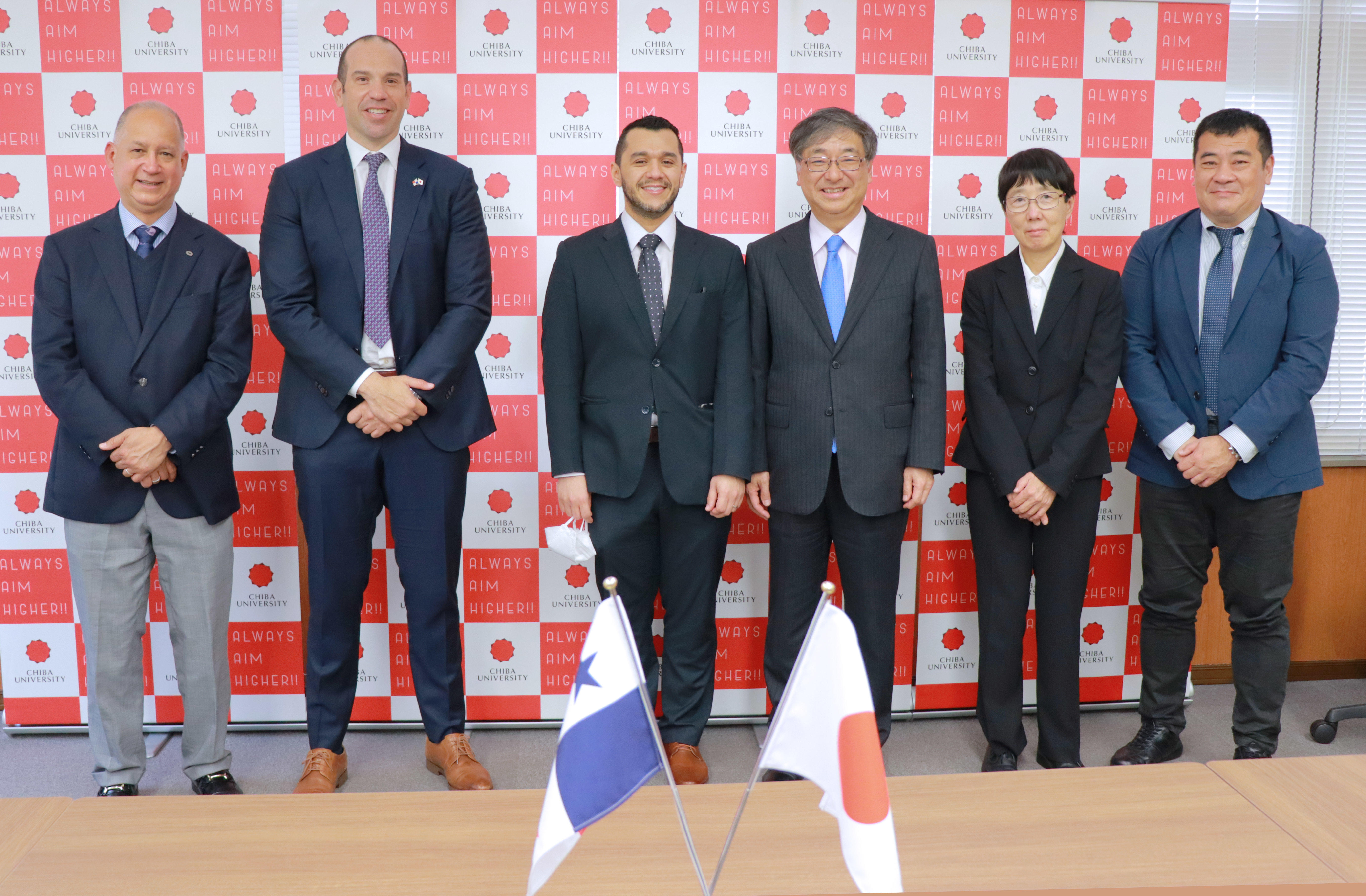 パナマ大学と千葉大学は、2016年に初めて大学間の協定を締結し、その後交流を深めてきました。当時の締結以前より、パナマ共和国の大学と本学の学術交流推進にご尽力いただいている、駐日パナマ大使館および、ディアス前駐日パナマ大使(現JAPOLAC代表理事)のご支援のもと、この度の協定更新が実現しました。