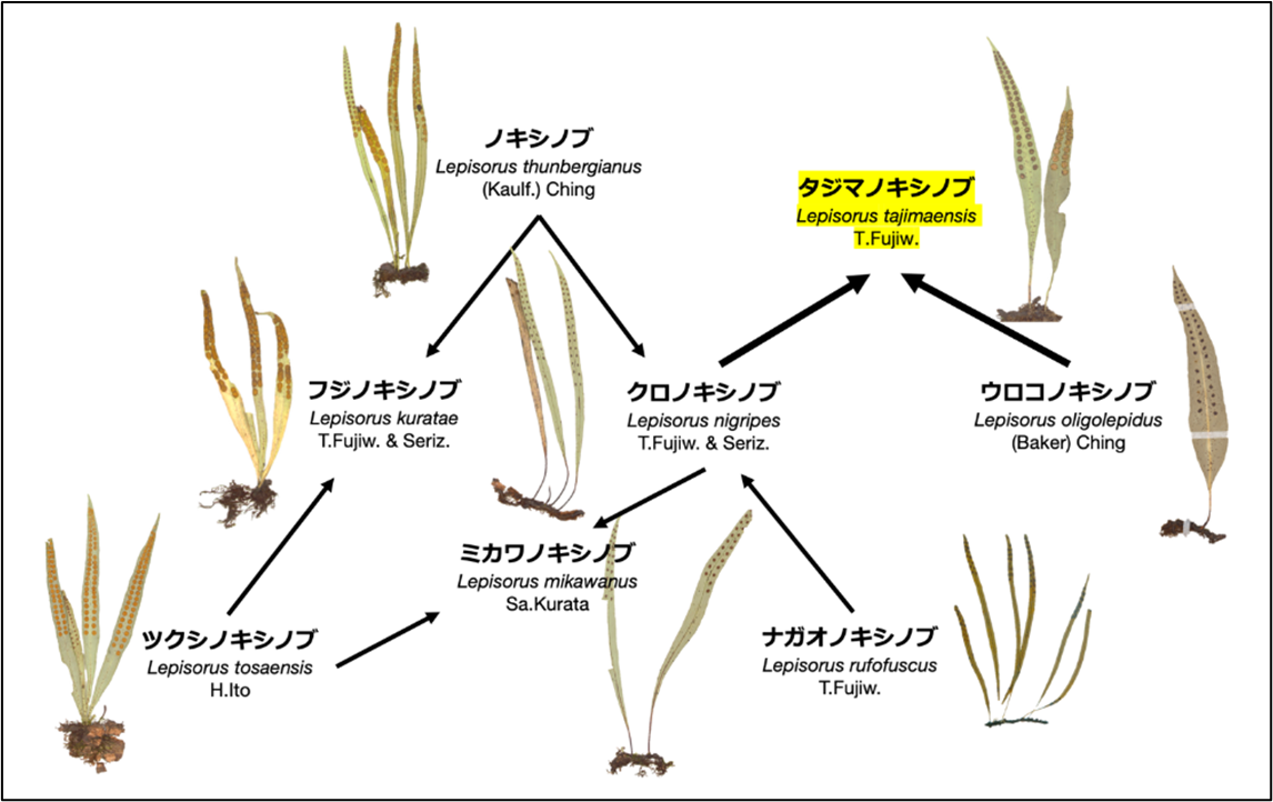 千葉大学大学院理学研究院の綿野泰行教授、昭和医科大学富士山麓自然・生物研究所の藤原泰央講師、兵庫県立人と自然の博物館の村上哲明館長らによる共同研究チームは、百人一首にも詠まれるシダ植物で、日本全土でよく見られるノキシノブ類の未記載種を兵庫県で発見しました。遺伝解析と形態比較の結果、この植物が種間交雑で生まれた日本固有の新種であることを明らかにし、和名「タジマノキシノブ」(学名:Lepisorus tajimaensis T.Fujiw.)と命名しました。